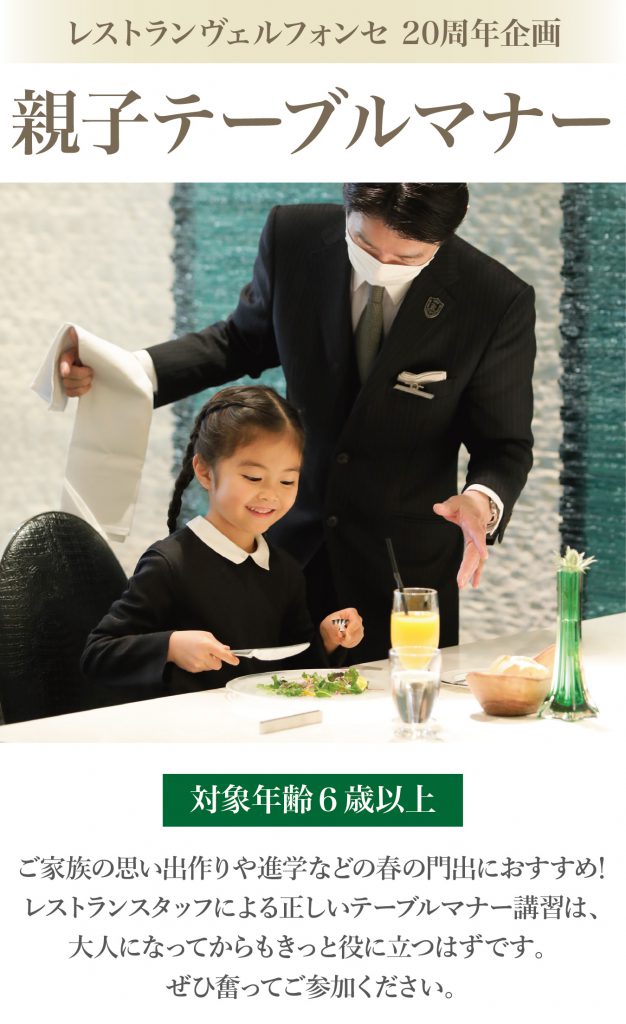 レストラン ヴェルフォンセの大人気企画「親子テーブルマナー講座」を今年も開催いたします!