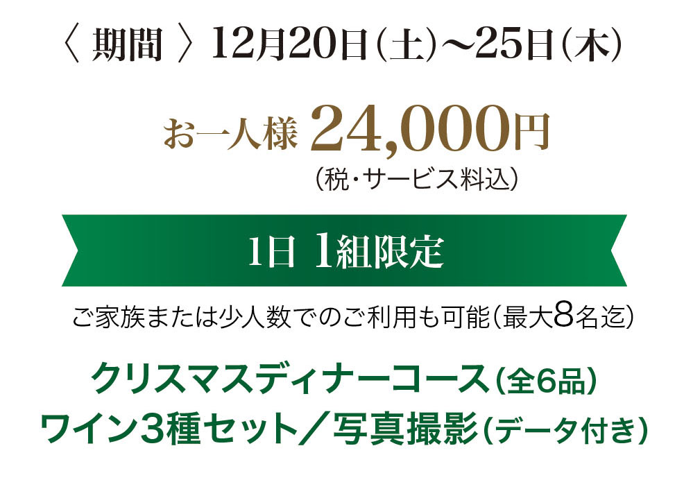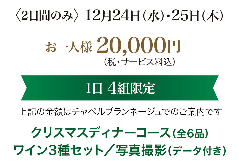 12月24日(水)・25日(木)の2日間はプロの演奏家による生演奏を含むプランもございます。