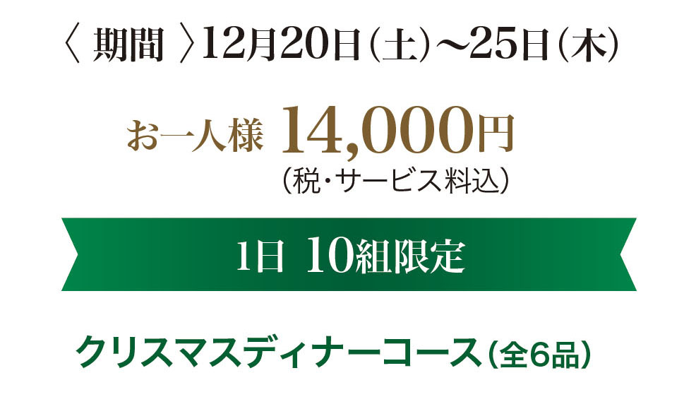 食材に贅を尽くし、クリスマス期間だけの特別メニューをご用意。おもてなしの心を込めて皆様をお迎えいたします。