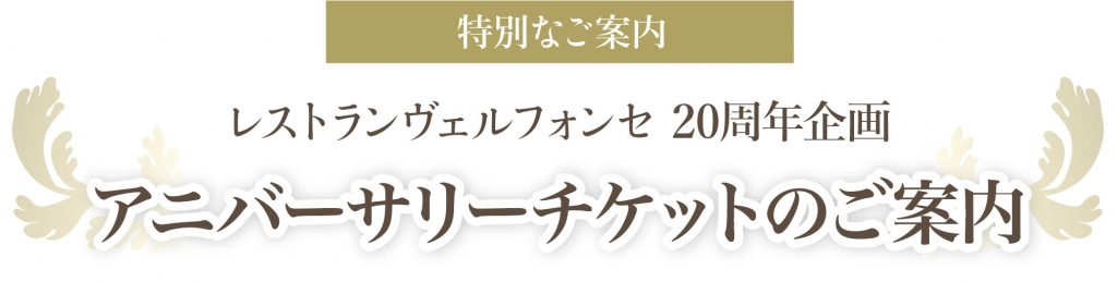 いつもレストランヴェルフォンセをご愛顧いただき誠にありがとうございます。 おかげさまで、ヴェルフォンセは今年20周年を迎えることができました。