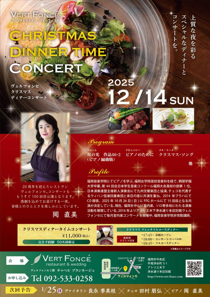 2024年12月14日(日)クリスマスディナータイムコンサート開催のお知らせ!